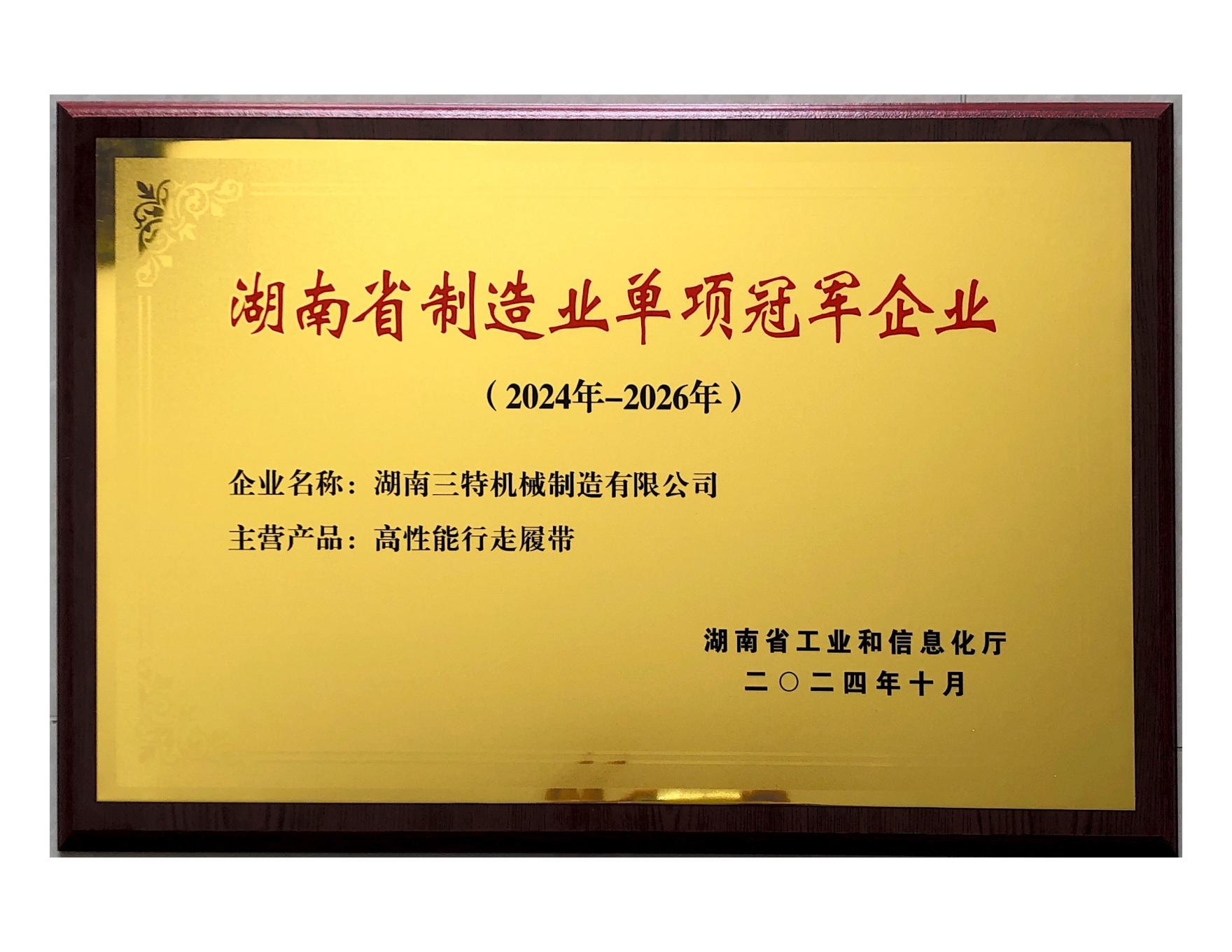 自主研发的高性能履带获评“湖南省单项冠军产品”